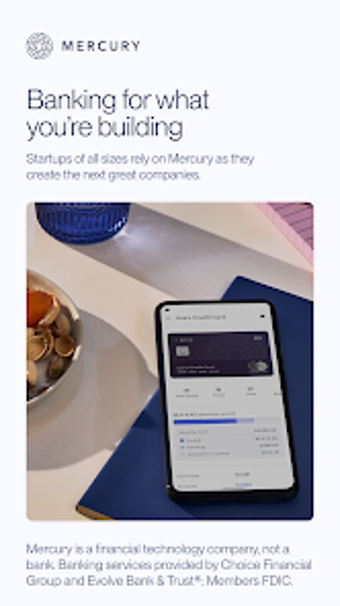 Обратите внимание, что хотя Mercury предоставляет банковские услуги, само оно не является банком. Банковские услуги предоставляются Choice Financial Group и Evolve Bank & Trust, члены FDIC.
